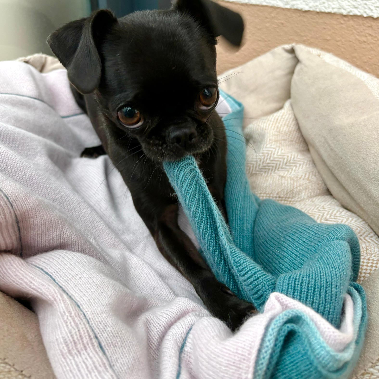 Premium Kuscheldecke für Haustiere aus Wolle und Kaschmir Petrol